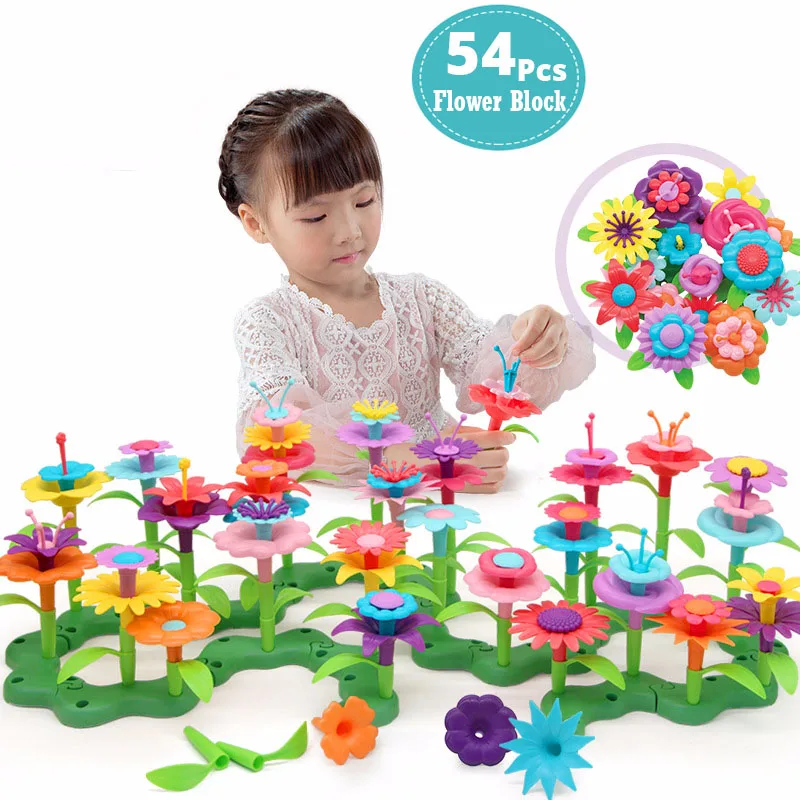 54 шт DIY цветок здание букет мечта сад девушки цветок соединяющие блоки, игрушки развивающие творческие ролевые игры игрушки