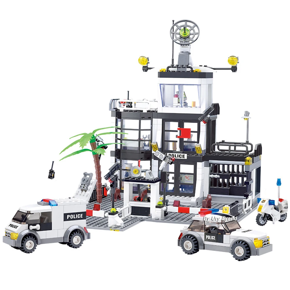 Fit городская серия-полицейский центральный офис Автомобиль Мотоцикл Мини фигурки Обучающие DIY строительные блоки игрушки для детей подарок