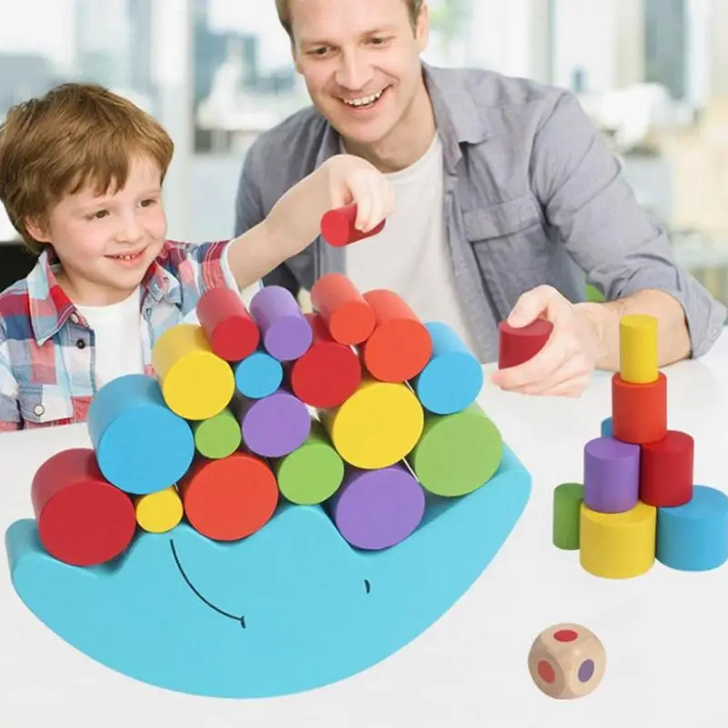 Луна баланс деревянная игра кубики для игр балансировочная игра сортировочная игрушка для детей (1 шт. модель Луны и 18 шт. круглые кирпичи)