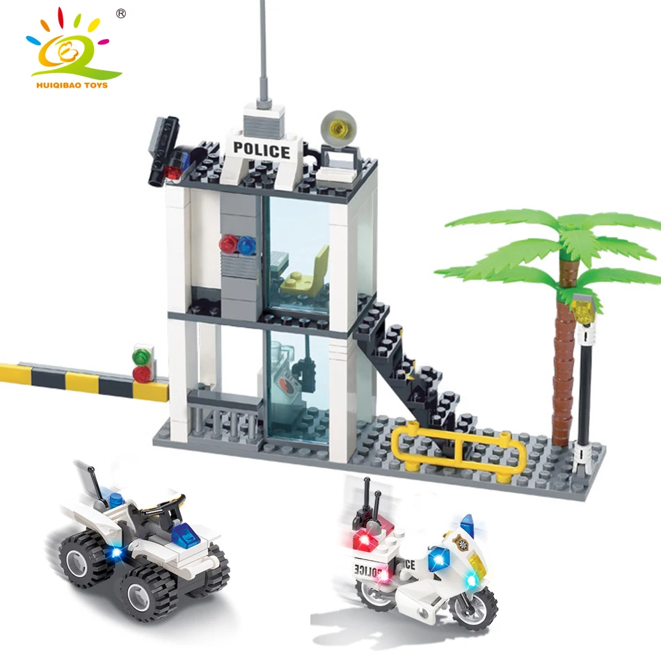 HUIQIBAO игрушечные лошадки Полиция серии здания Конструкторы Совместимость Legoed город DIY Command Center Enlighten блоки-кирпичики наборы для ухода за коже...