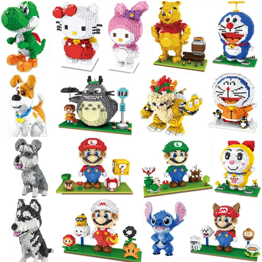Мини блоки Тоторо большой размер милый Марио Ститч Sence Модель Кирпичи Луиджи сборки brinquedos Дети подарки Doraemon игрушки для детей