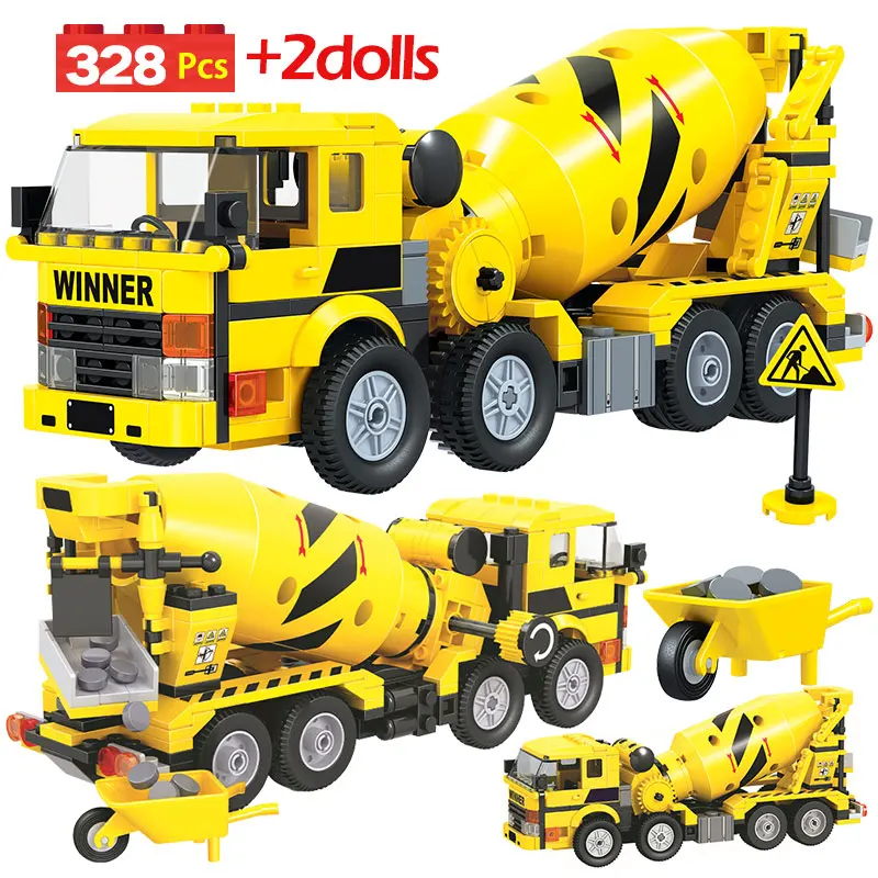 700 шт., желтые строительные блоки для городских инженерных грузовиков, Миксер для автомобилей, комбинированный дорожный каток, кирпичи, погр...
