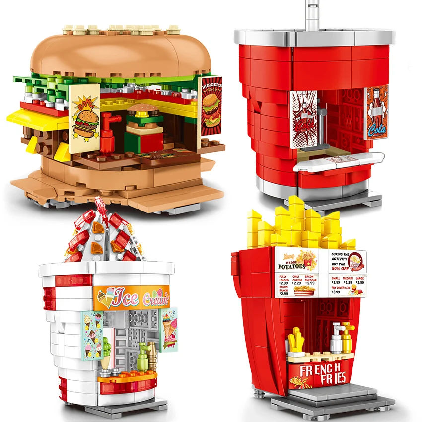 Legoed город гамбургер мороженое напиток картофель фри закуски продажа магазин строительных блоков Кирпичи вид на улицу города игрушки для де...