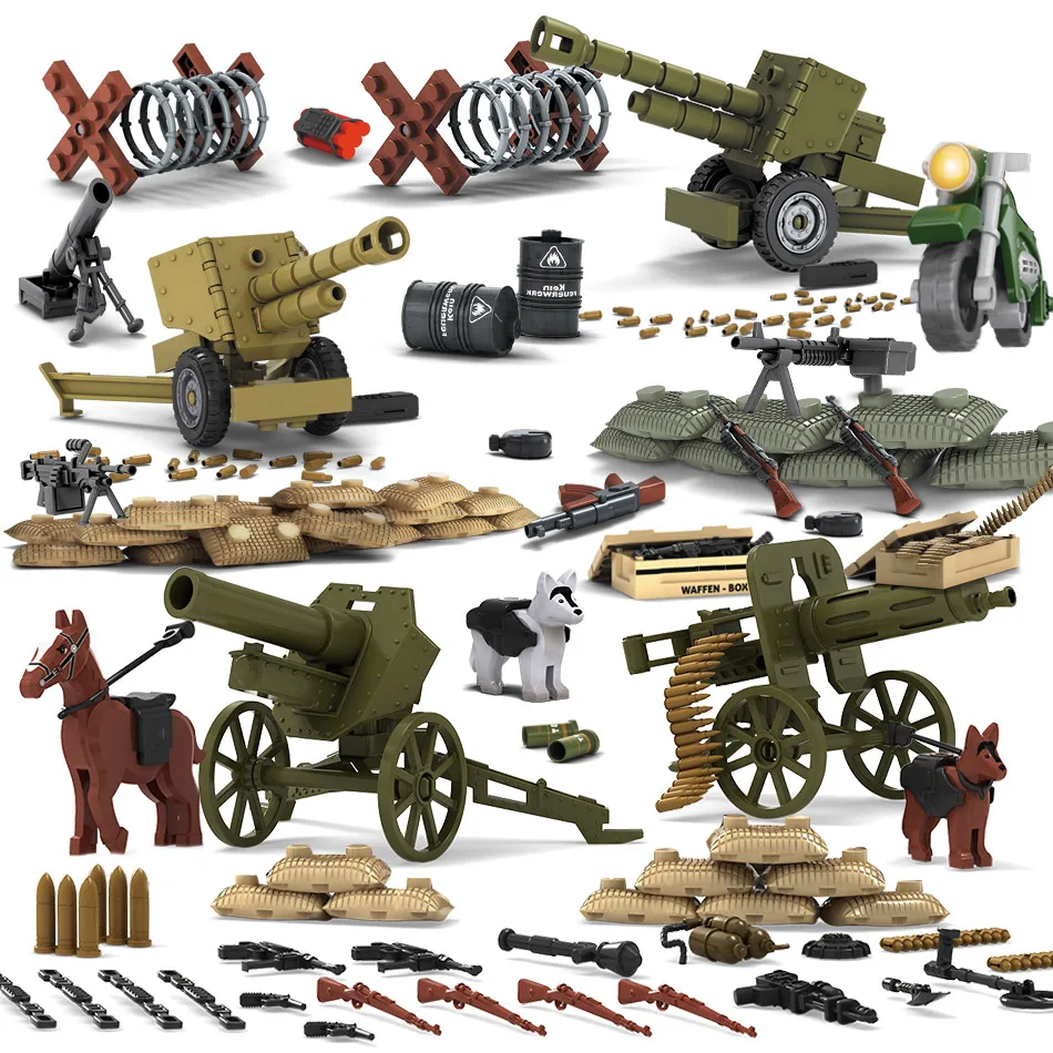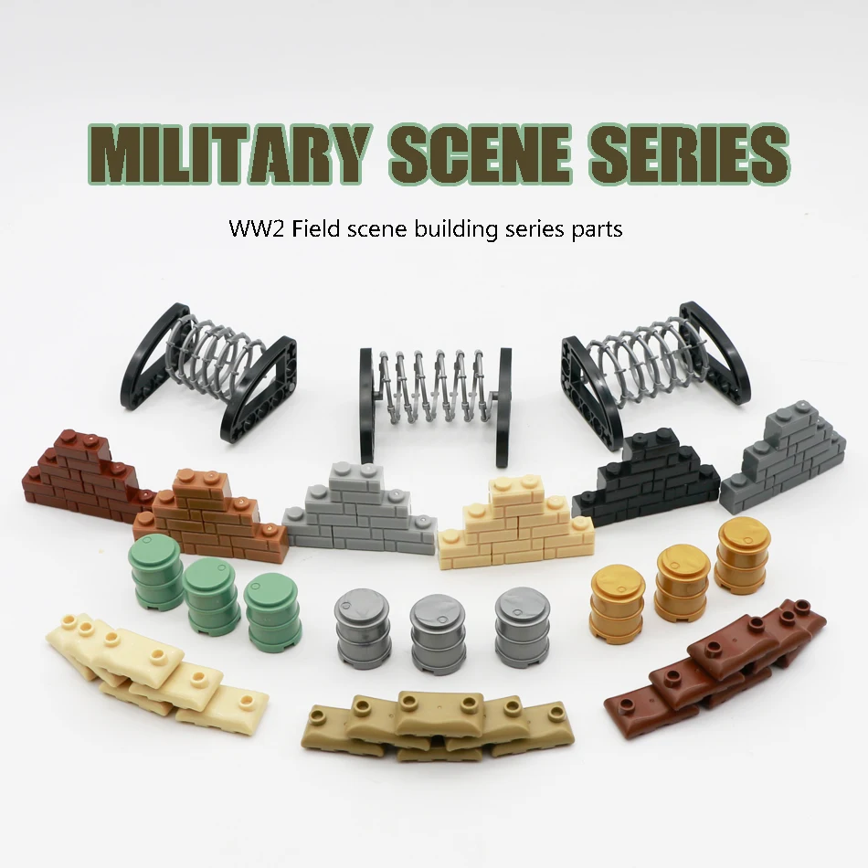 Поле боя оружие Pack кирпича песком масла барабана проволоки барьер солдат армии WW2 военной базы legoinglys строительные блоки игрушки