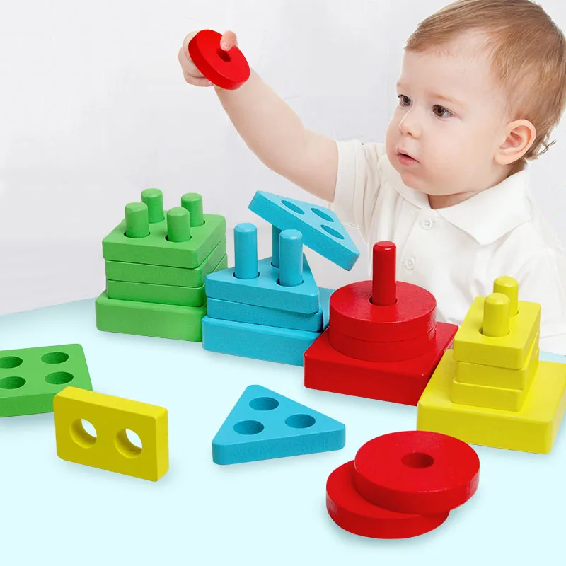 Детские игрушки деревянные игрушки Монтессори строительные блоки геометрическая форма соответствия ребенка для раннего развития игрушки ...