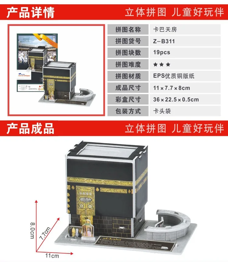 3D бумажная головоломка, модель здания, игрушка, мини мировая великая архитектура, Kaaba al-Ka Bayt Allah huose bah, знаменитая сборка musilims qibla