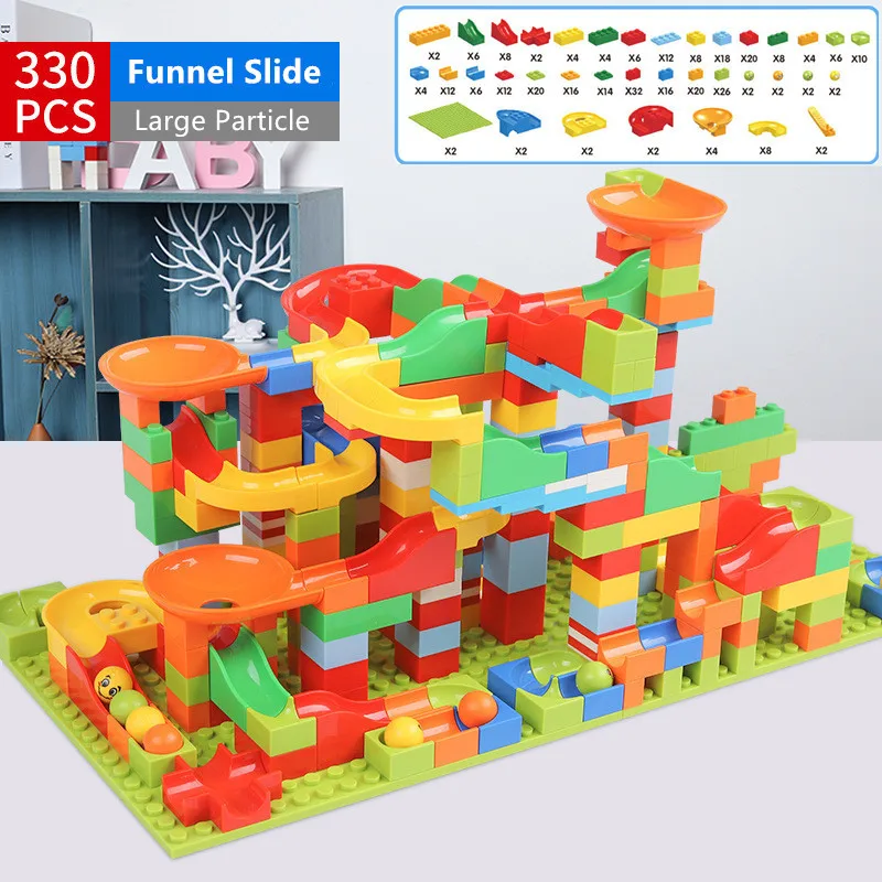 Мрамор Race Run лабиринт Duplo Building Block мяч DIY игрушка трек набор пластик воронка слайд собрать кирпичи Совместимость Legoingly
