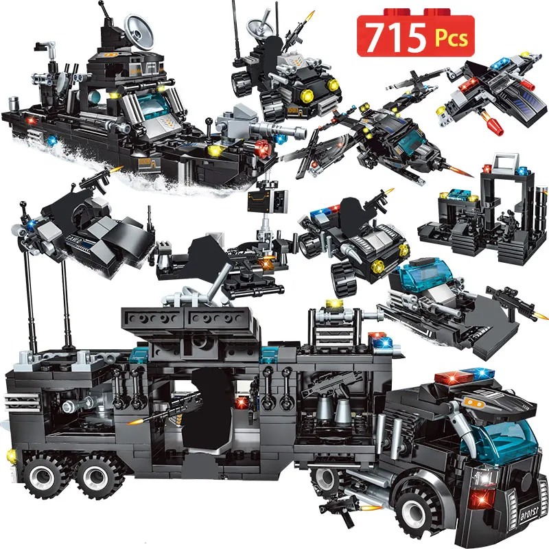 715 шт игрушка для мальчиков городской полицейский участок грузовик строительные блоки Совместимость с legoingly городской спецназ команды блок...