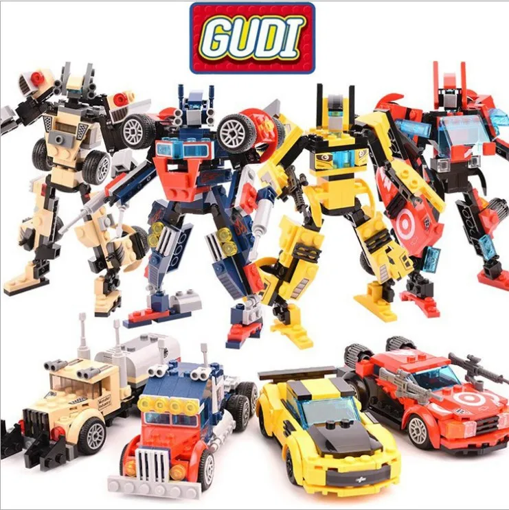 Gudi Building Block 4 в 1 автомобиль трансформации машина-трансформер Автоцистерна робот фильм кирпичи Мини Набор игрушек подарок для детей