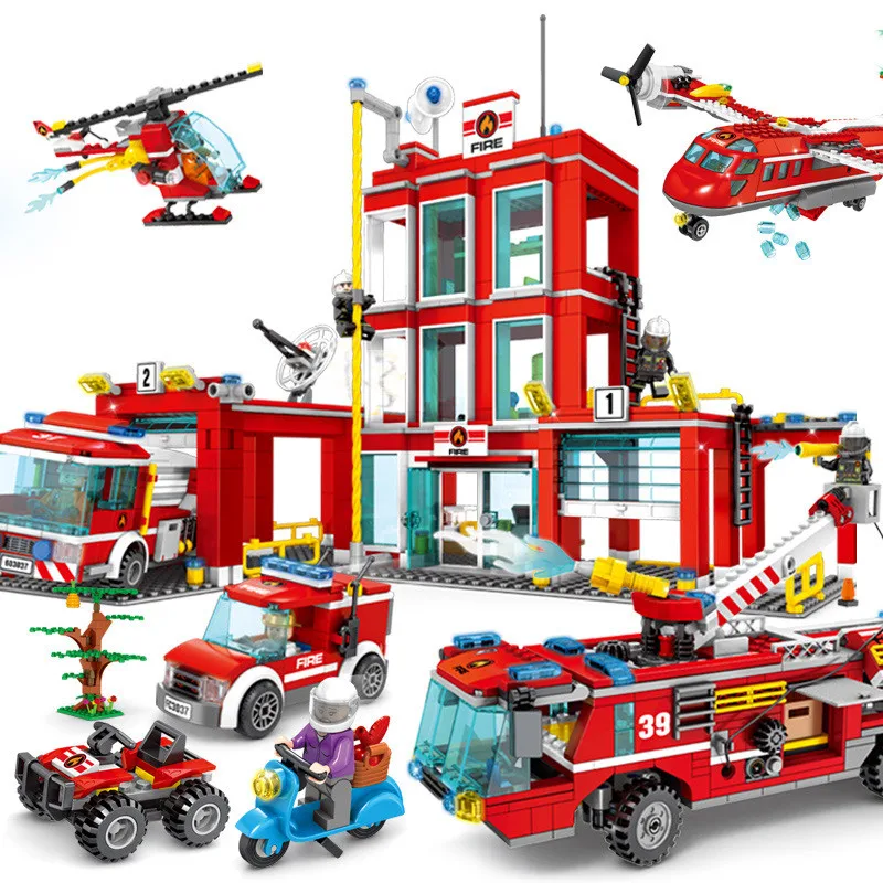 Пожарные грузовики автомобиль-Вертолет Лодка строительные блоки станция Совместимость Legoinglys городской пожарный фигуры Детские игрушки
