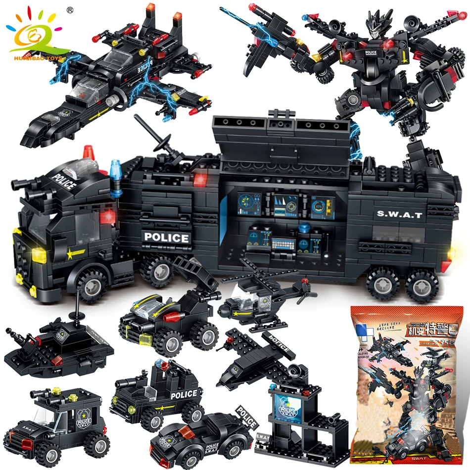 HUIQIBAO SWAT полицейский участок грузовик машина строительные блоки городской вертолет автомобиль спецназ фигурки кирпичи развивающие игрушки