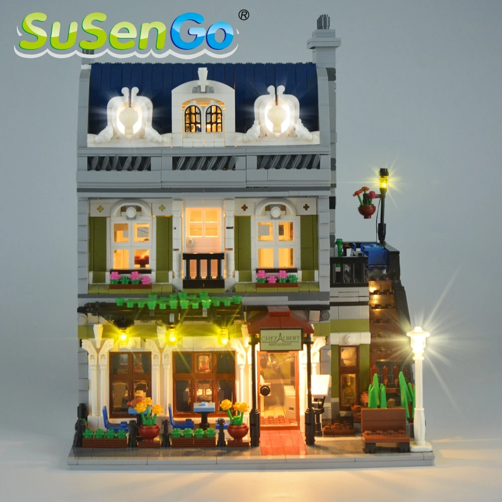 SuSenGo свет набор светодиодный Creator Street Конструктор "Парижский ресторан" комплект освещения 10243