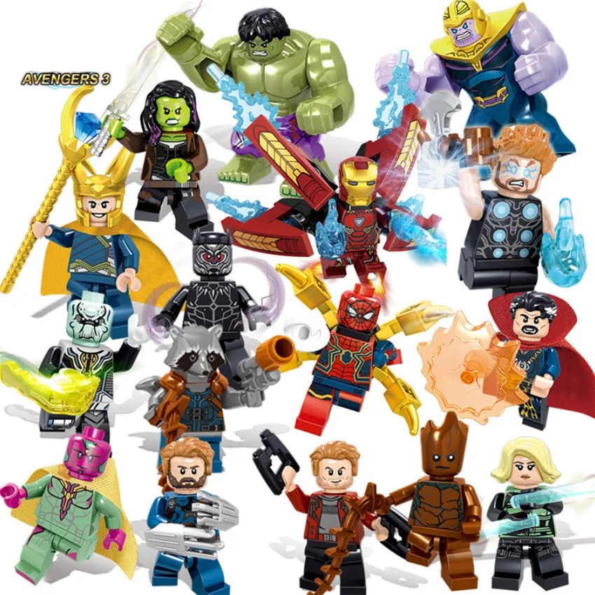16 шт. Мстители Бесконечность войны Набор фигурок Legoinglys супер герой Железный Тор танос Халк Черная пантера строительные блоки модель игрушк...