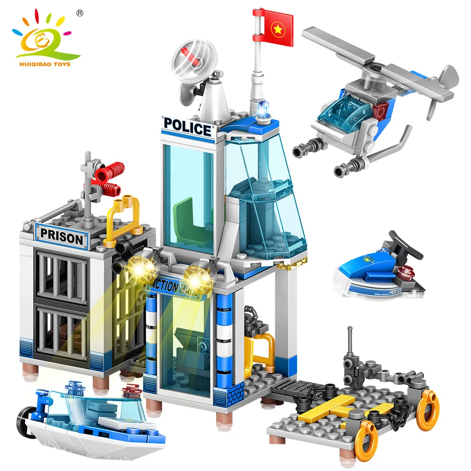 312 шт. 4in1 полицейский участок лодка вертолет строительные Конструкторы Совместимость городские полицейские цифры кирпичи игрушечные лошад...