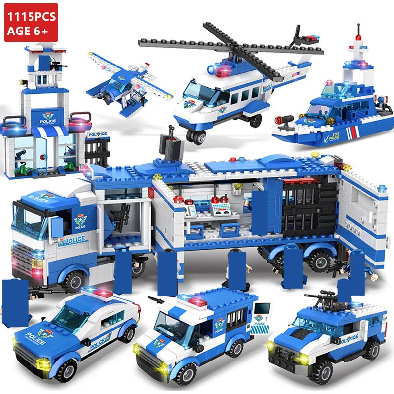 312 шт. 4in1 полицейский участок лодка вертолет строительные Конструкторы Совместимость городские полицейские цифры кирпичи игрушечные лошад...