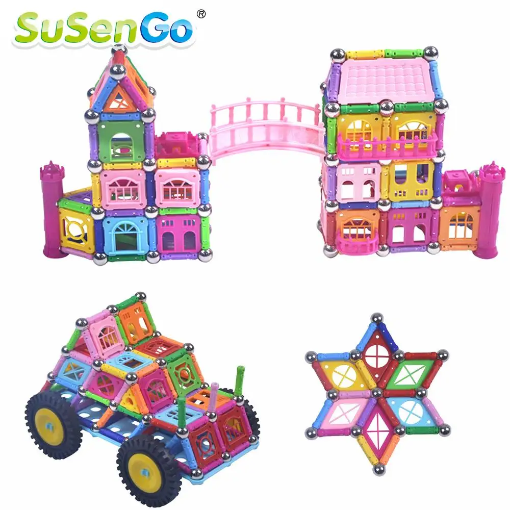 Магнитный конструктор SuSenGo, 135/268/358 шт., магнитные бруски и металлические шарики, для раннего обучения, подарок для детей