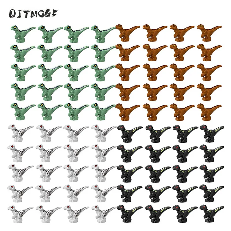 Детские строительные блоки с динозавром, 10 шт., белые, синие, коричневые, черные, Велоцираптор, Детские кубики, обучающая игрушка «сделай сам»