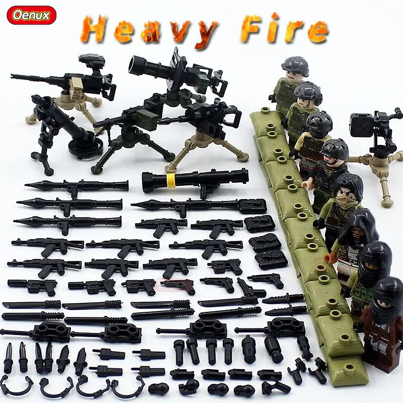 Oenux Новый Тяжелый огонь солдат армии цифры с книги об оружии модель Военная Униформа Building Block Современные Военные сцены DIY Кирпич