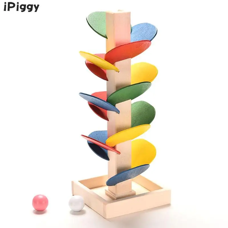 IPiggy Строительные Деревянные игрушки для Детские деревянные игрушки красочные дерево мраморный шар Запуск игра трек для ребенка Монтессори...