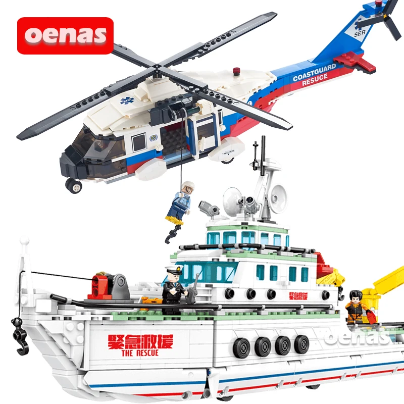 Совместимость Legoing город аварийные службы спасательный вертолет корабль строительные блоки кирпичная модель детских игрушек Brinquedos