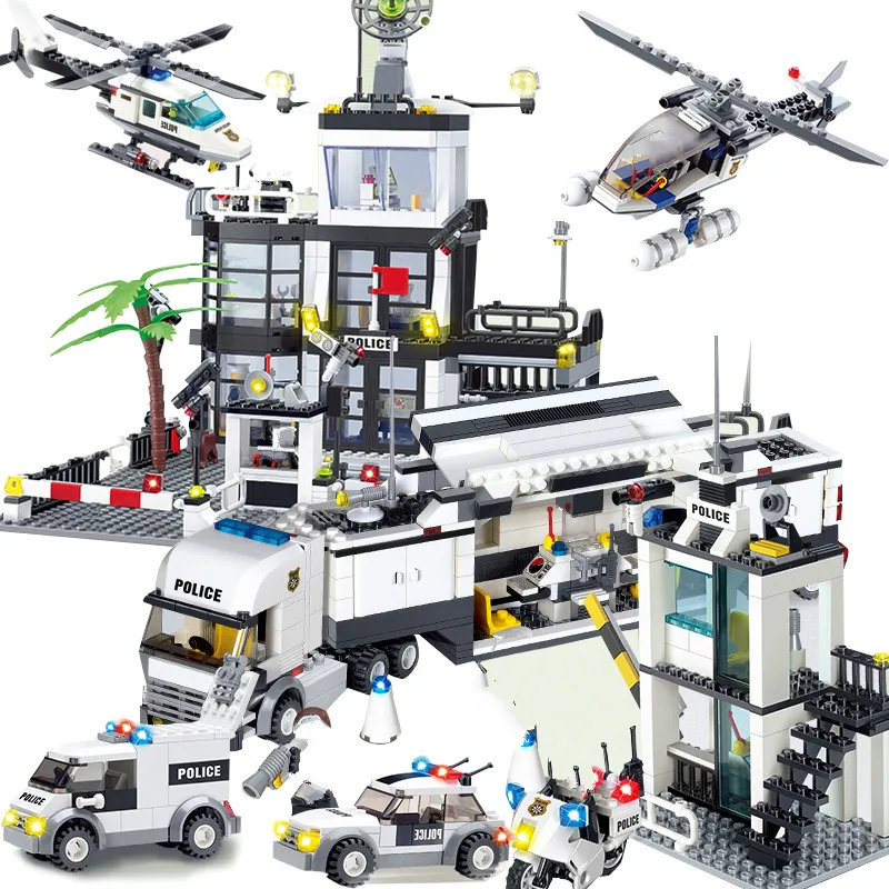 Детские игрушки, совместимые с Legoinglys, городская улица, полицейский участок, наборы, автомобиль, грузовик, спасательная творческая модель, ст...