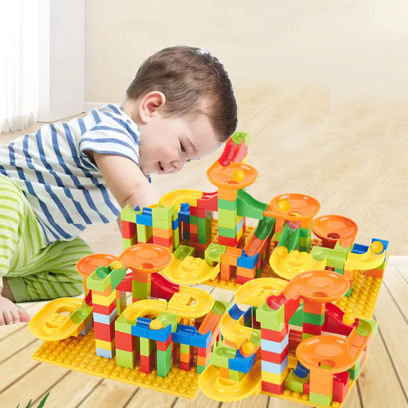 DIY сборка туннель из труб блоки игрушки водопровод строительные блоки + колеса автомобиля Сборная модель игрушки для детей подарок