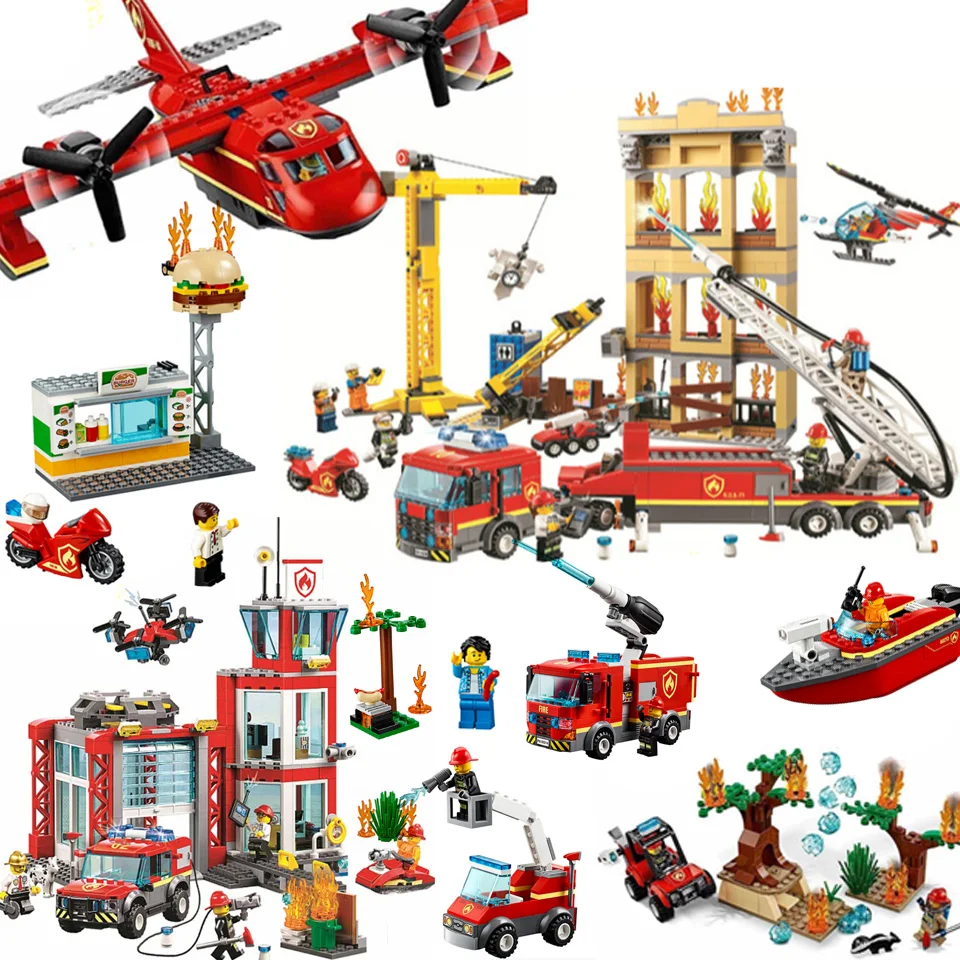 Пожарная машина вертолет модель здания Конструкторы Совместимость Legoed город пожарные рисунок Brinquedos образовательные кирпич игрушечные лош...