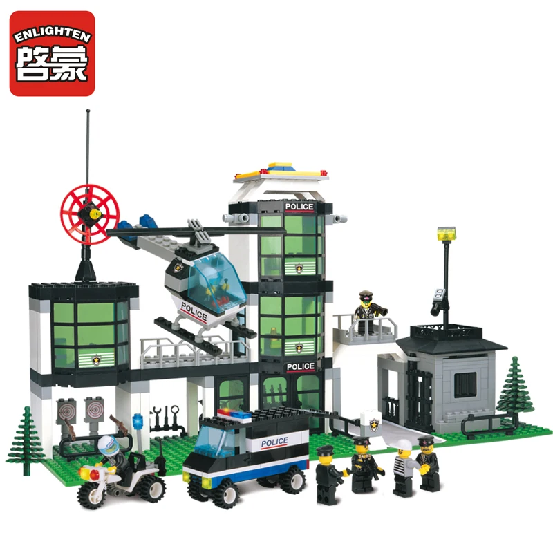Enlamten 466 шт. городской полицейский мотоцикл вертолет строительные блоки наборы совместимые LegoINGs кирпичи Playmobil игрушки для детей