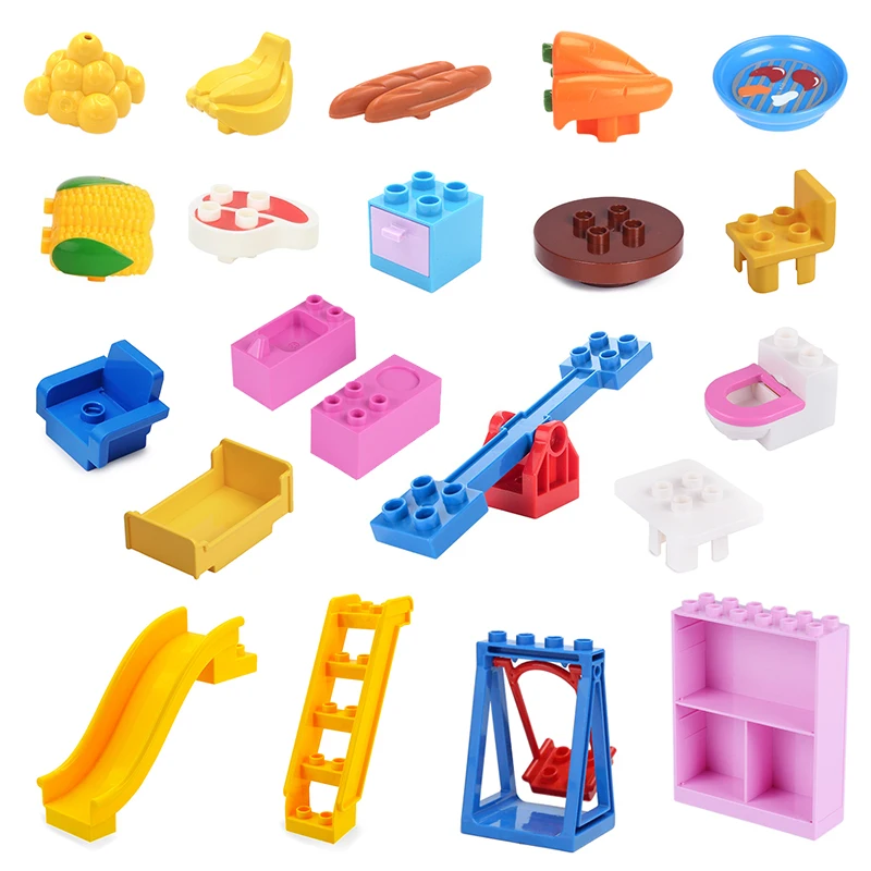 Модели мебели для сцены, большие строительные блоки, слайды, качели, аксессуары для сборки, стол, детские игрушки, совместимые с Duplos, фермерские кирпичи