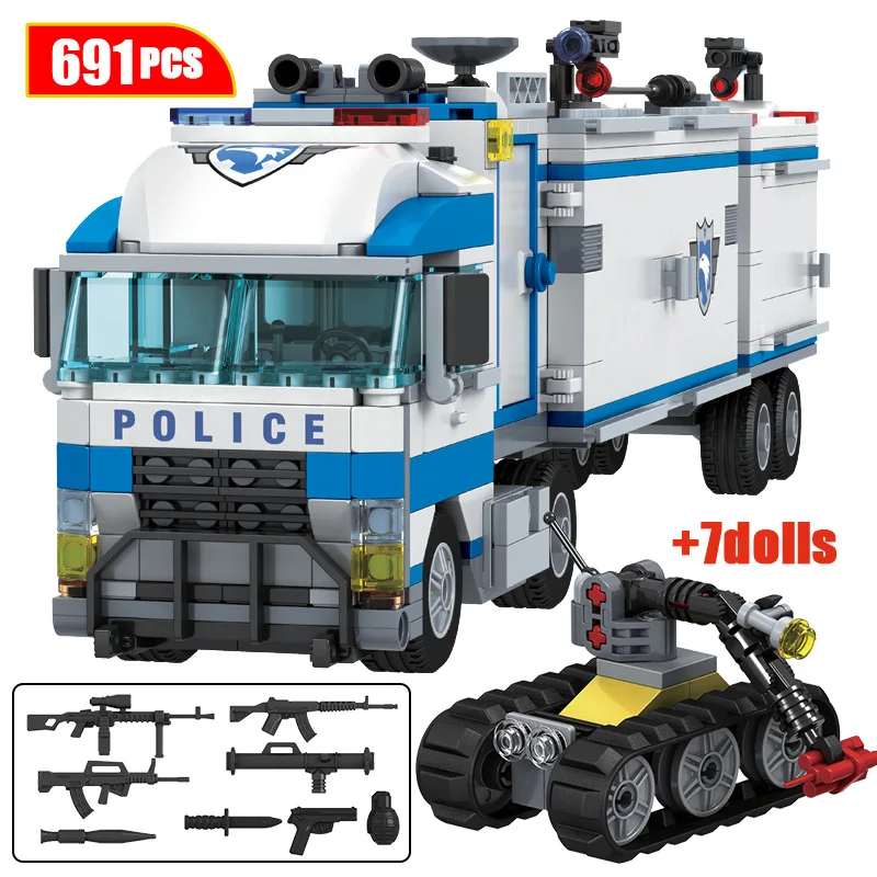 691 шт вертолет спецназа лодка строительные блоки Legoing город полицейский участок техника автомобиль DIY фигурки Кирпичи игрушки для детей