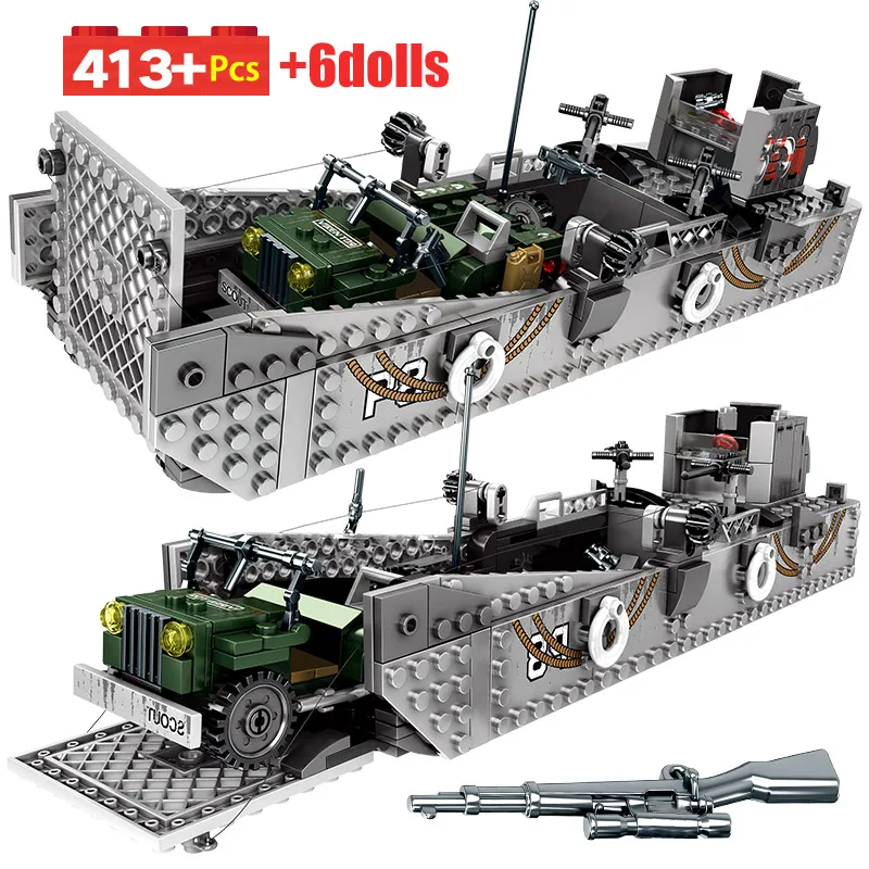 Военный боевой десантный корабль Трейлер Модель Строительные блоки для Legoing WW2 Танк Городской полицейский грузовик солдат Кирпичи игрушки для мальчиков