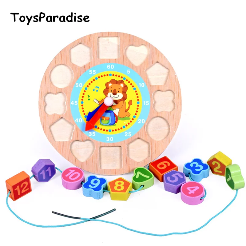 Блок игрушки цифровые часы Бусы Деревянные игрушки для детей CartoonClock дерево строительство рисунок блоки детские развивающие игрушки Детски...
