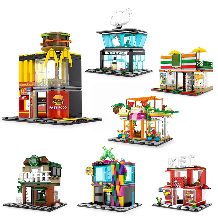 Большой Legoings город улица здание вид Еда телефон кофе цветок удобство магазин KTV строительные блоки Наборы кубиков детские игрушки