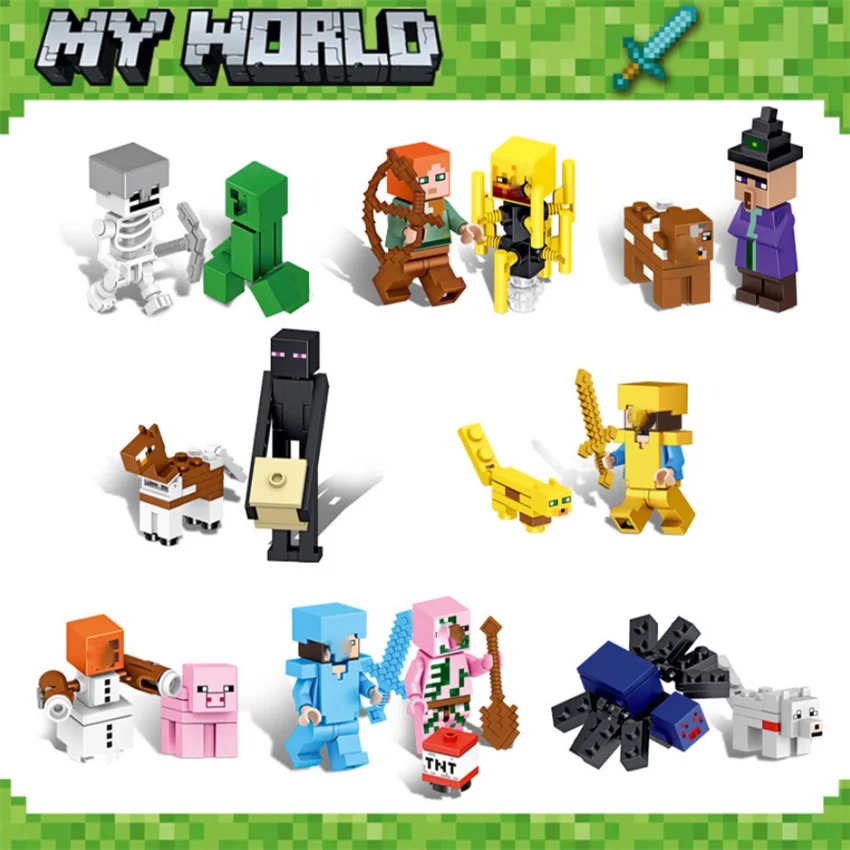 Совместимость Legoed mincraft 8 шт./компл. цифры Minecraft мой мир зомби Стив Enderman DIY Building Block minifigures серии