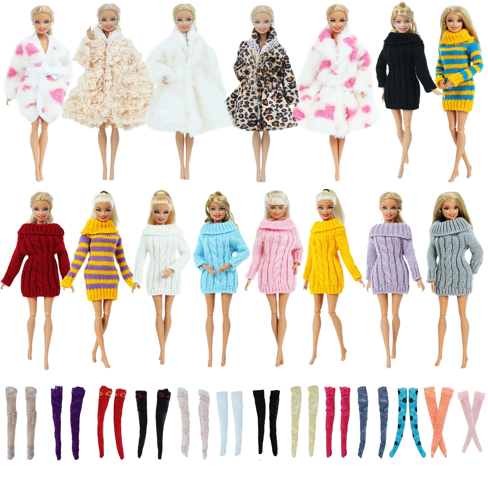 5 шт./компл. Модный зимний наряд для куклы Барби 1x пальто 1x свитер случайный смешанный 3х Чулки Одежда Аксессуары игрушка 12 ''кукла