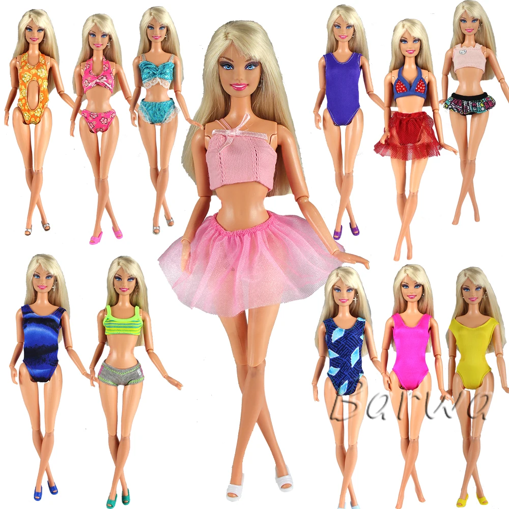 5 предметов/Набор кукла в купальнике случайный выбор купальники Купальник-бикини Экипировка пляжная купальная Одежда для куклы Барби