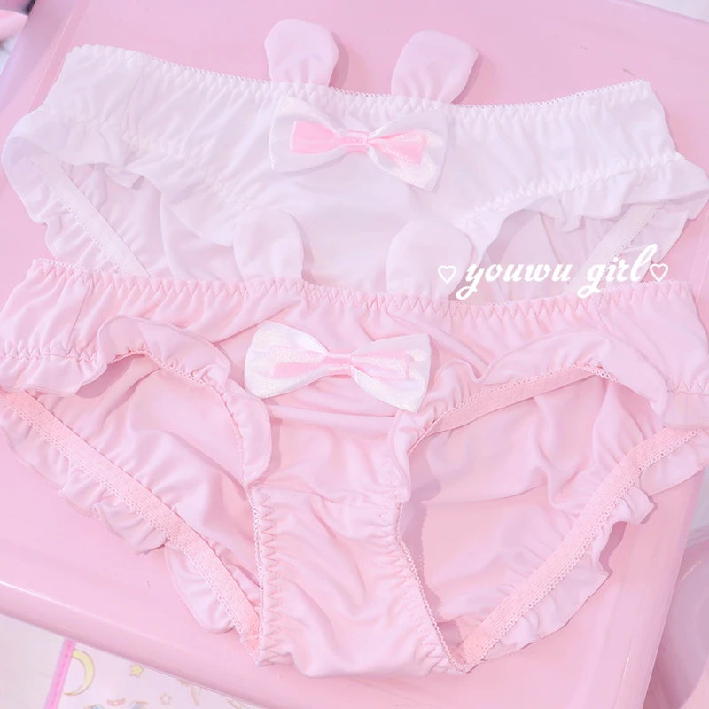 Корейские кружевные трусики с бантиком и кроликом для женщин, бесшовное сексуальное нижнее белье с низкой талией, трусики на бедрах, женские трусы