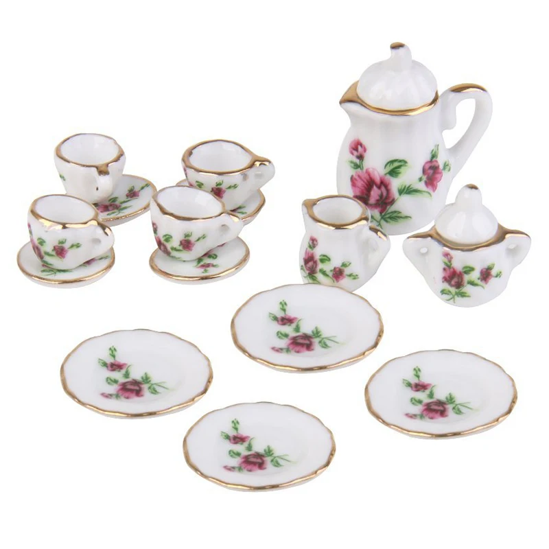 Горячая продажа 1/12 кукольный дом Миниатюрный фарфоровый чайный сервиз тарелка чашка красный пион