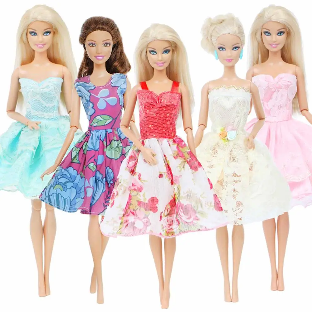 5 шт./лот, смешанный стиль, свадебное платье, мини-юбка, цветное платье, Одежда для куклы Барби, аксессуары для кукольного домика, детские игру...