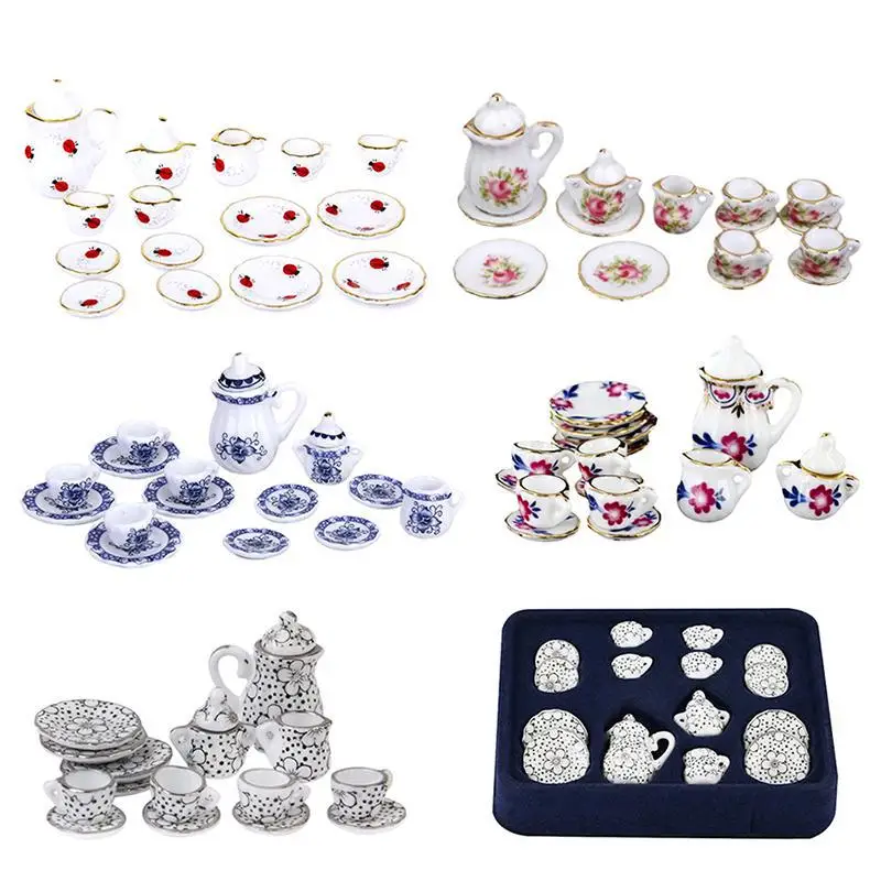 1:12 миниатюрный 15 шт. фарфор чай чашки набор ситц цветочный принт Ресторан посуда Кухня кукольный домик мебель интимные аксессуары