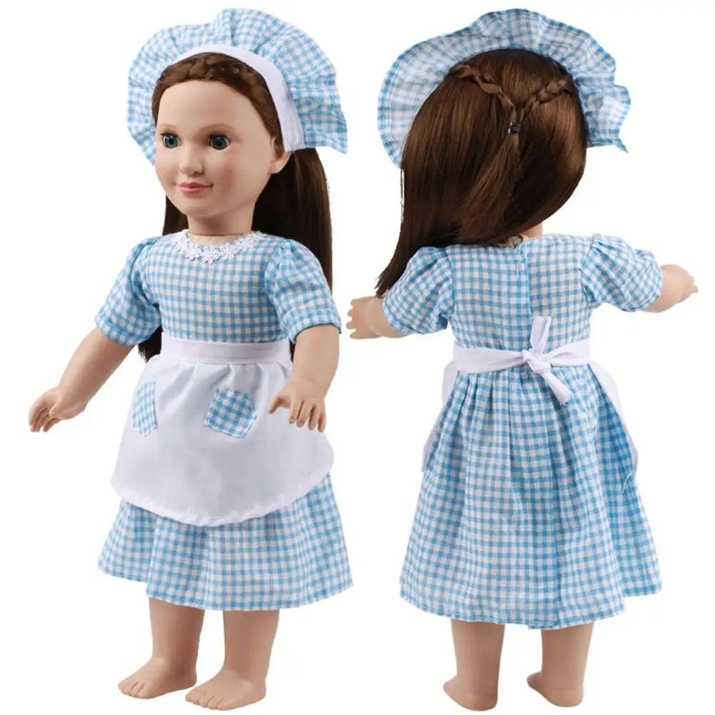 18-дюймовое Кукольное платье с карманами, с головной повязкой, фартук шеф-повар Стиль куклы для девочек, одежда для девочек, для детей, для рол...