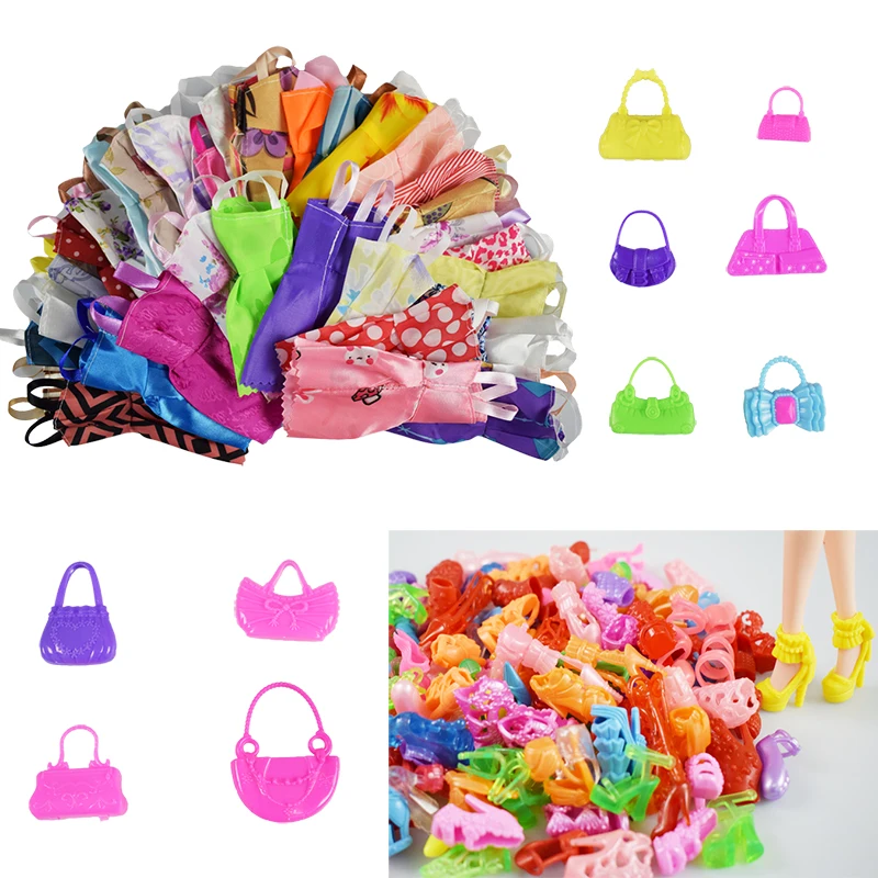 25 товаров/комплект аксессуары = 10 шт. виды красивая кукла ткань короткая юбка + 5 Сумочка куклы + 10 обувь кукла ребенок подарок для Барби плать...