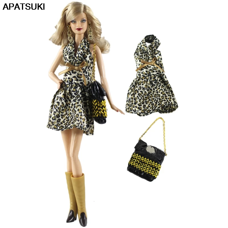 Леопардовое модное платье для куклы Барби одежда Сумочка Модные наряды для кукольный домик Barbie кукла 1/6 Аксессуары Детская игрушка