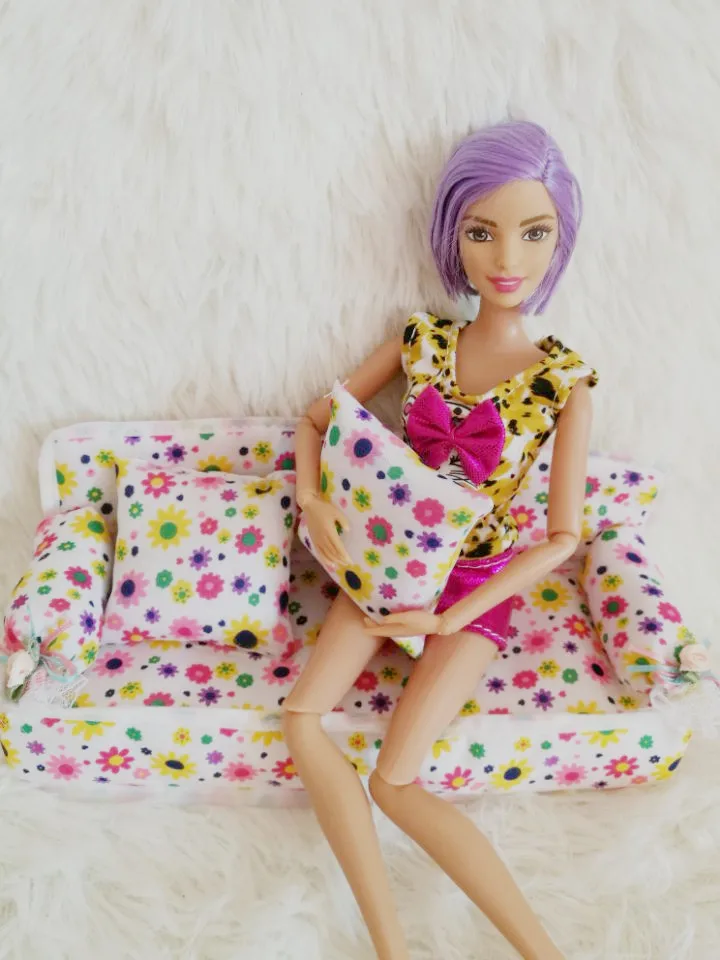 Бесплатная доставка кукольный дом Игрушечные лошадки горячие мини кукольный домик Мебель цветок ткань диван с 2 подушки Интимные аксессуар...