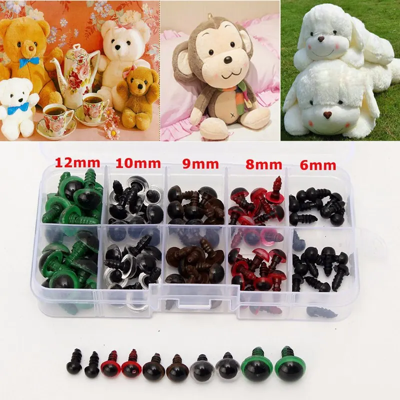 100 шт./пакет 6-12 мм безопасные пластиковые глаза для животных кукольные ремесла плюшевый медведь Красочные защитные глаза Кукла мультфильм ж...