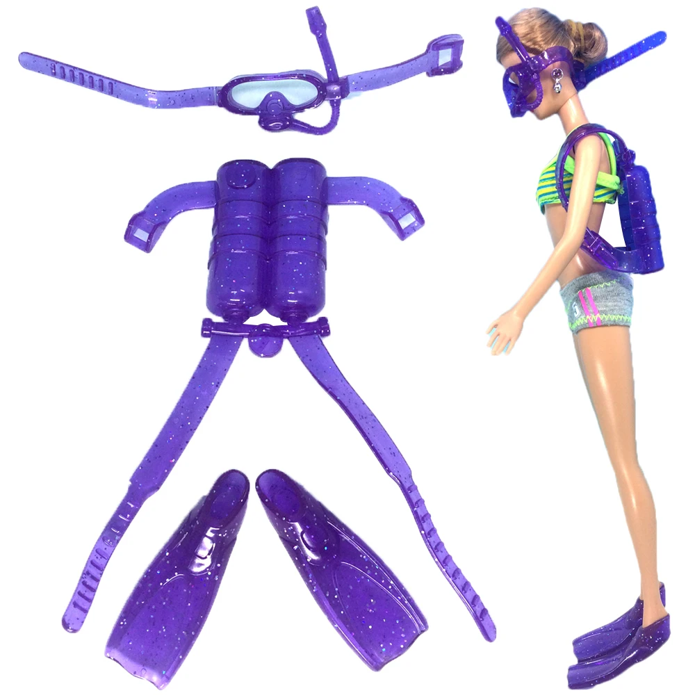 NK один комплект Кукла Дайвинг оборудование аксессуары пластиковый кислородный бак плавательные очки Feets для куклы Барби Девочка День рожде...