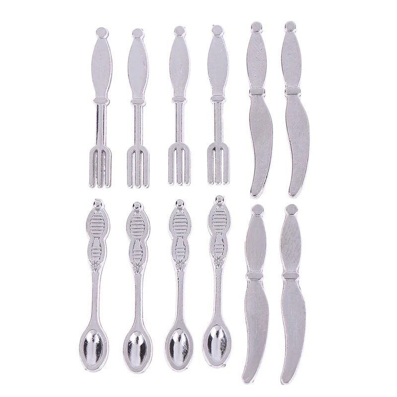 12 шт. 1:12 имитация кухня мебель для еды игрушки Миниатюрные аксессуары Вилка Нож суповая ложка, столовые приборы кукольный домик