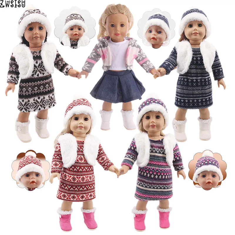 Одежда для куклы, 3 предмета, футболка + юбка + свитер, костюм для 18 дюймов, американская кукла и 43 см, Новорожденный ребенок