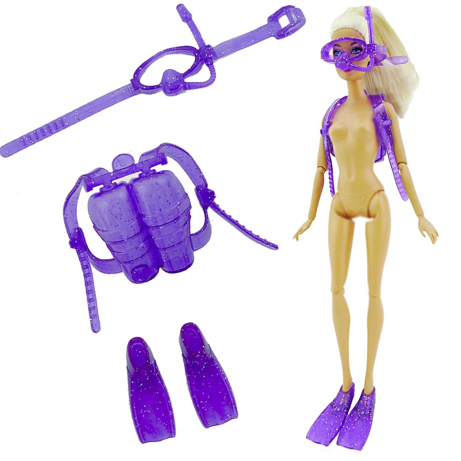 Бесплатная доставка 1 компл.. фиолетовый оборудование для дайвинга пластиковый кислородный бак плавательные очки Feets для куклы Барби аксесс...