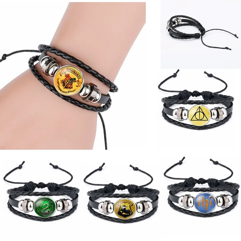 3D кожаный браслет Harri Potter, напечатанная стеклянная подвеска с драгоценным камнем, значок магической школы, Snitch Luna Death, треугольный браслет, б...